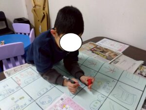 第二のお友達も、寒い外気でほっぺを赤くしてやってきました。エアコンでお部屋を暖かくして身体を動かしてリフレッシュ!音楽に合わせてLet‘s Danceと行きましょう。
