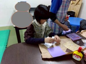 本日の第一教室は「壁面工作」でちぎり絵を行いました。