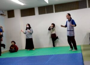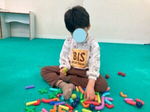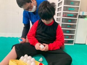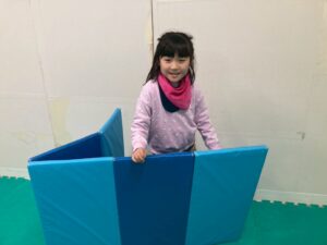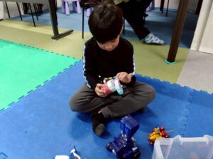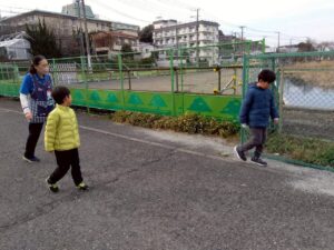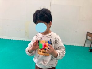 第一のお部屋では、みんなの好きなボールを使ってキャッチの練習。あれれ。ボールを抱えて走り出しちゃうお友達もいます。リズミカルに飛び石も行いましょう。第二では、横浜っ子ならみんな知ってる横浜市歌を唄って心をほぐし、『雪やこんこ』の曲に合わせてリトミックスカ-フをみんなで振って身体をほぐします。一緒に歌を唄う事によって気分もリフレッシュです!まだまだ寒くてお外では運動するのを躊躇しちゃったりもしますが、温かいお部屋の中だと逆に運動しやすいですね。