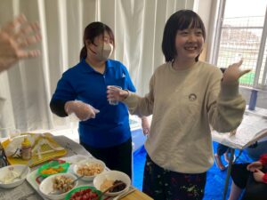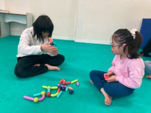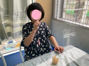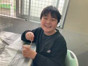 空き時間には外で体を動かしたり、粘土に絵の具を混ぜたりなどして楽しみました。