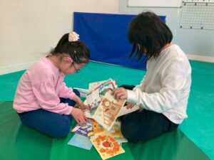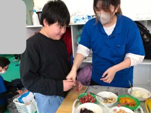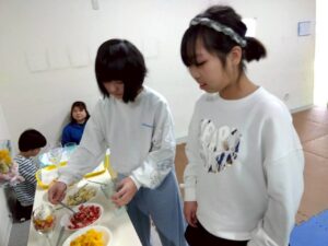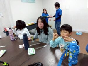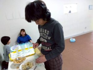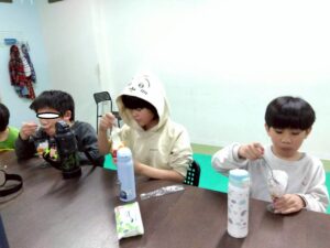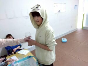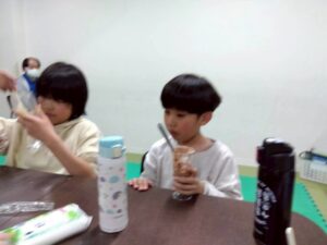 休憩時間にはお友達に水筒を配ってくれる児童もいますよ。