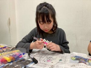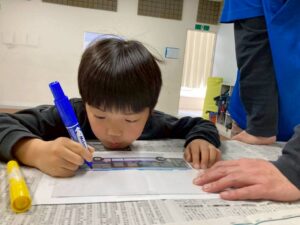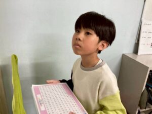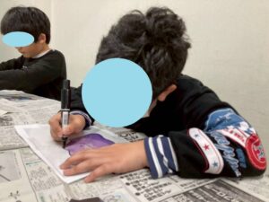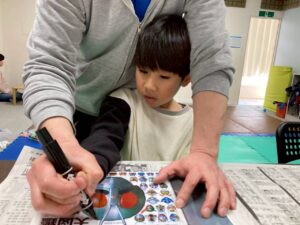 みんな真剣な顔で掴んだキャップを見つめて、お箸を持つ手の感覚をしっかりと意識して取り組んでいました!