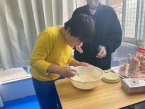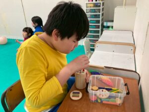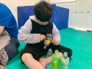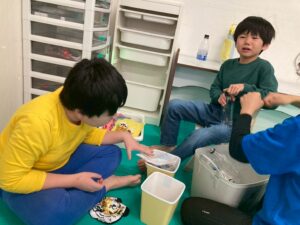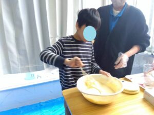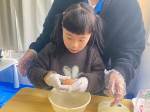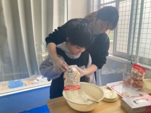 本日の第二教室は「感覚統合遊び」で小麦粉粘土を行いました。