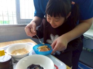 みんな、上手に具材を切ったり、お鍋で具材を上手に混ぜていました。
