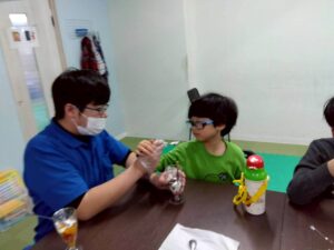 また、自由時間には近くのリサイクルボックスにペットボトルをだしに行きました。