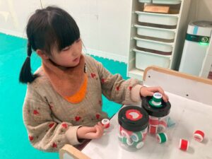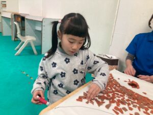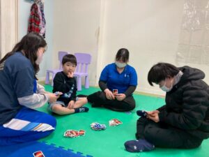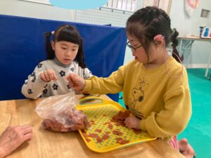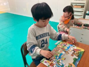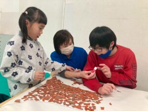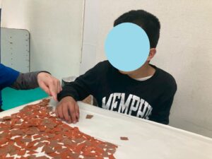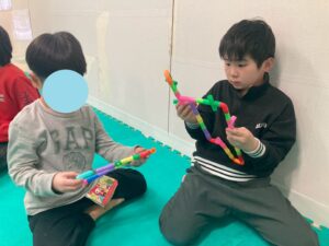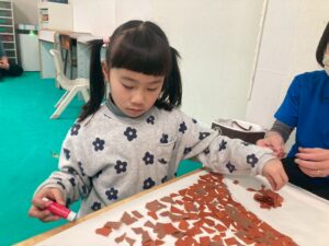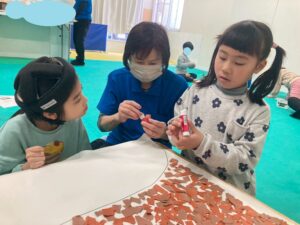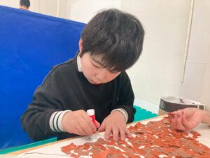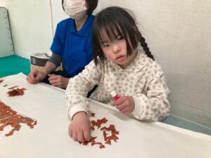 訓練室➁では「2月の工作」を行っています!今回は鬼をモチーフにした、小さな物入を作りました!ハサミで切ったり、ボンドでつけたり、顔のバランスや目の形を工夫をすることで、鬼の表情も変わり、怒っている鬼や笑顔の鬼。様々な鬼を作る児童たちの姿をどうぞ!