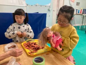 第一教室は、『おつかいアリさん』や『カエルの合唱』などの曲に合わせ