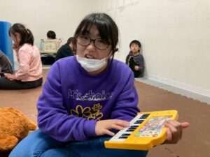 本日の第一教室のレクは『リトミック』です。