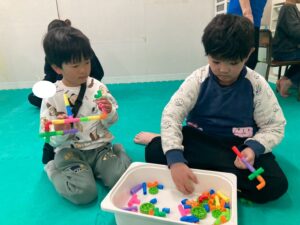 今回は、凸凹ブロックを使ったサーキット運動!落ちない様に足元に注意しつつ、上手く乗れたとして重心の移動するときも慎重に!そんな児童たちの姿をどうぞ!