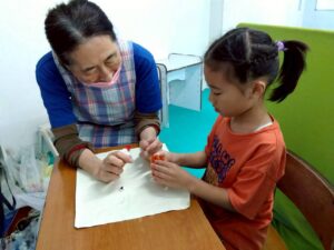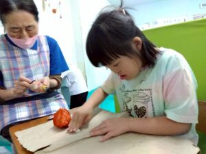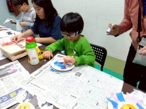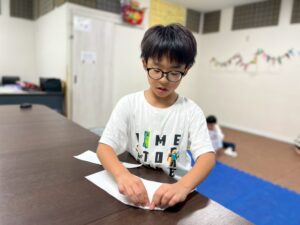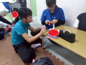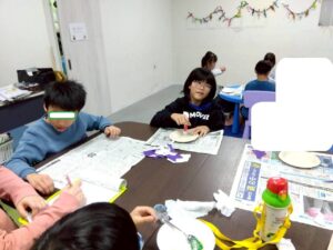 ハサミを使って、点線に沿って紙を切ったり切ったものをのりで貼り付けてガーランドを作ったりしました☆