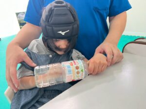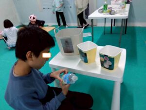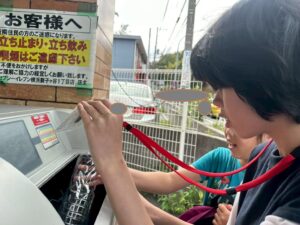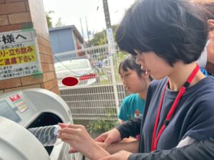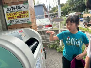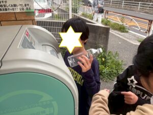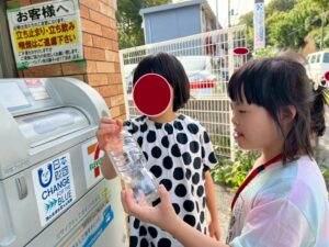 近くのコンビニに設置されている、ペットボトル回収機に職員と児童と一緒に投入作業を行いました!