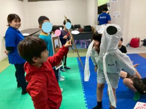 ロープを使って跨いだり潜ったりとたくさん体を動かしました!