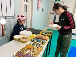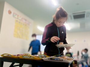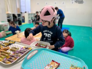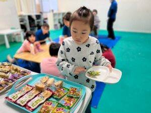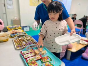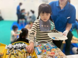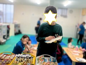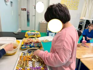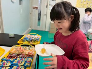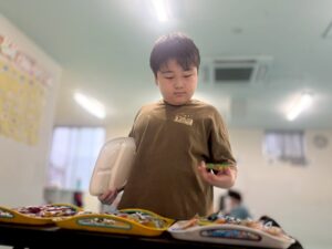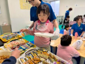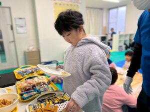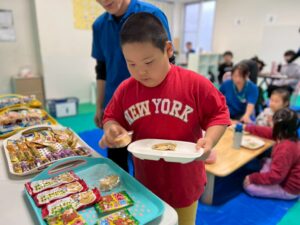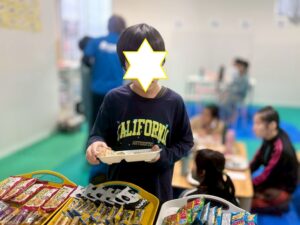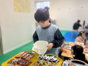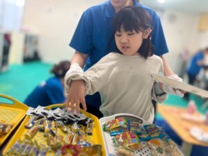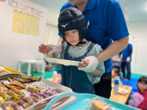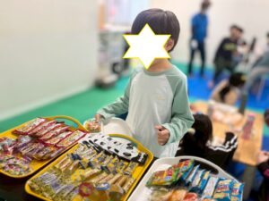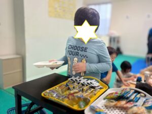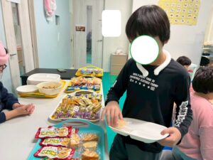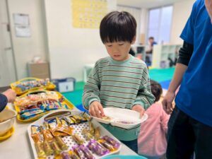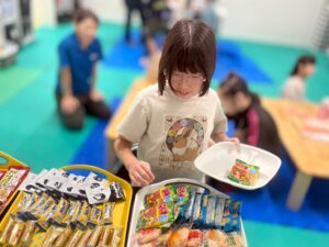 第一では自分でおやつを選ぶ『おやつセレクト』を行いました。たくさんの種類のお菓子の中から好きなおやつを3つ選びます。選ぶと同時に選ばないということも行っています。例え食べたいものが4つあっても選ぶのは3つです。その取捨選択がなかなか難しくもあります。