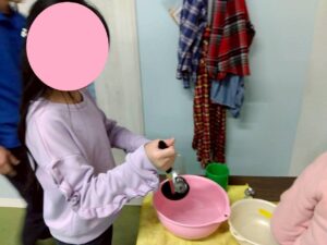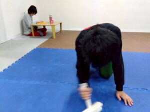 本日の第一教室は「運動遊び」で雑巾がけをしました。