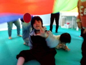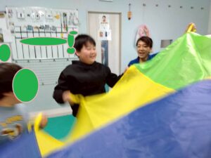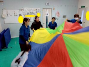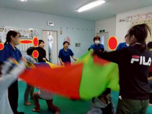みんなパラバルーンを使い音楽にのせて上手に動かしていました!