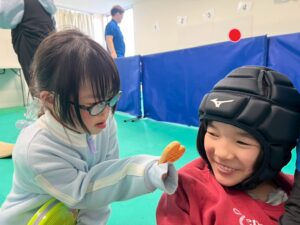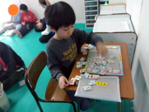 第二の『SST』は『フル-ツバスケット』を行いました。先生が言ったことに当てはまった人はイスに素早く移動します。『今日、給食残しちゃった人!』『…ん?あ。ボクだ!』他人のお話をよく聞こうと言う趣旨です。こちらも盛り上がりました。