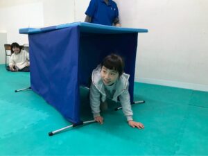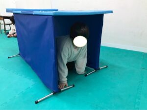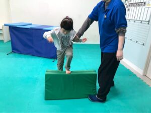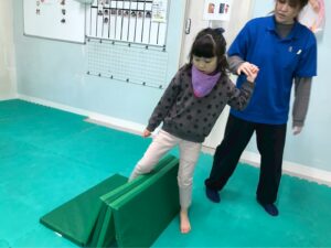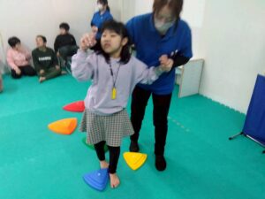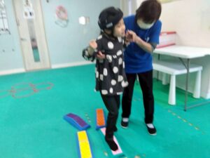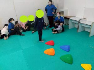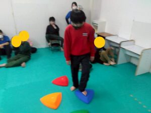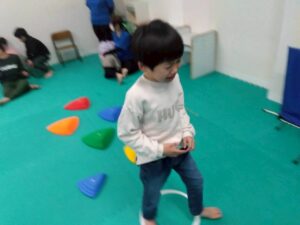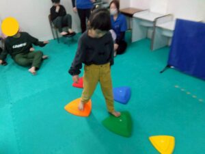 今回は、凸凹ブロックを使ったサーキット運動!落ちない様に足元に注意しつつ、上手く乗れたとして重心の移動するときも慎重に!そんな児童たちの姿をどうぞ!