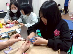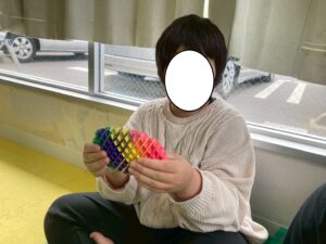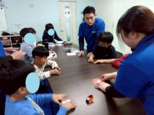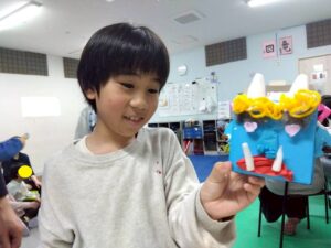 訓練室➁では「2月の工作」を行っています!今回は鬼をモチーフにした、小さな物入を作りました!ハサミで切ったり、ボンドでつけたり、顔のバランスや目の形を工夫をすることで、鬼の表情も変わり、怒っている鬼や笑顔の鬼。様々な鬼を作る児童たちの姿をどうぞ!