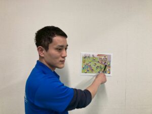 職員が提示したイラストを見て危険予測(危ない所)を発表することを行いました。