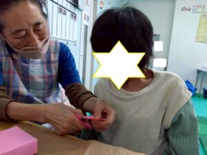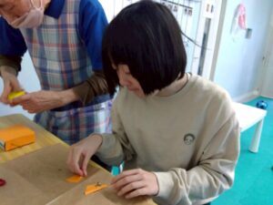 折り方を前で職員が説明し、先生の手元をよく見ながら折ることが出来ました!