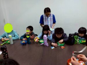 本日の第二教室のレクは「感覚統合」です。