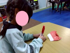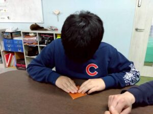 集中して折り紙を折っている児童の様子をご覧ください♫
