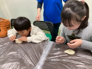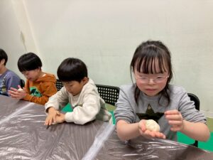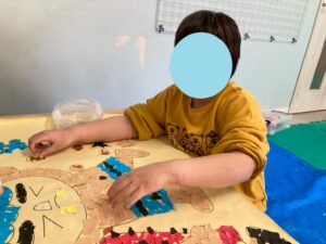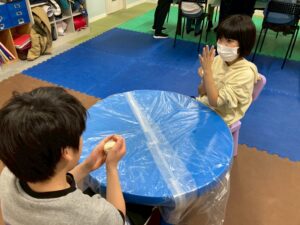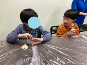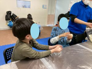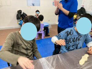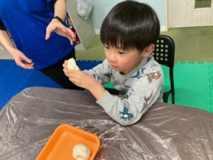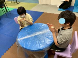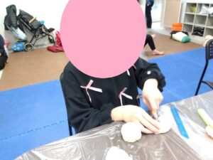 本日の第二教室は「感覚統合遊び」で小麦粉粘土を行いました。