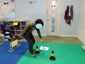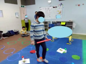 【ミッションにチャレンジし勇者の剣を拾ってお姫様を助け出すという】ストーリー仕立てのサーキット運動に子どもたちは興味津々です😊