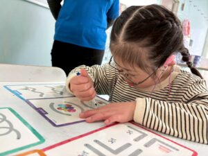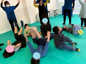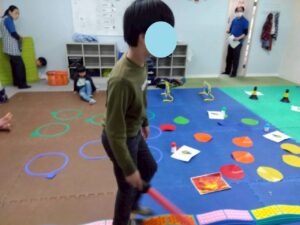今日のライズ。第一のリトミックは職員がピアノで弾く♪ぞうさん、ありさん♪、カエル♪、ちょうちょ♪…いろいろな曲を聞いてそれぞれのお部屋に移動します。さて、間違わずに動けたでしょうか。楽しく身体を動かしましたね。