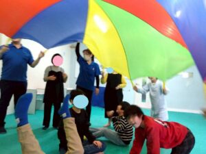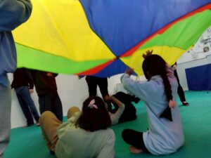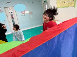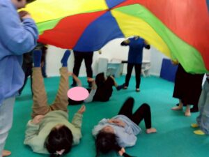 子ども達が大好きな音楽を流しながらバルーンの周りを回ったり