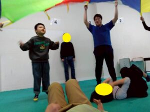 今回はマスを移動しながらそこに配置してあるイラストに対応して体を動かしていきます!火のイラストでは踏まない様に足を開き、雷マークはしびれて片足立ちに、ストップマークでは5秒待ちましょう!そんな児童たちの姿をどうぞ!