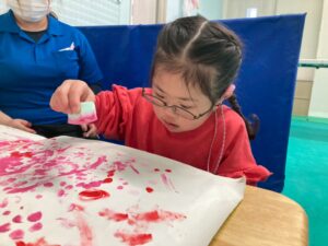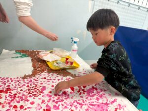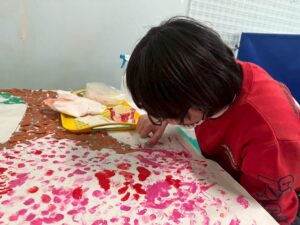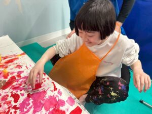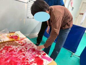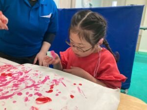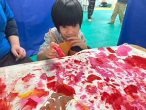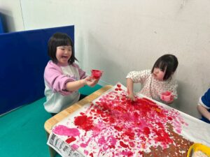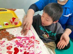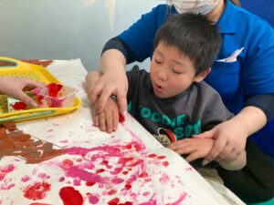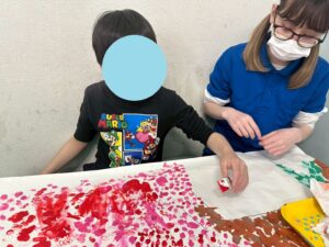 絵の具を指で付けたり、スポンジでぽんぽんしたりして、完成することができました。