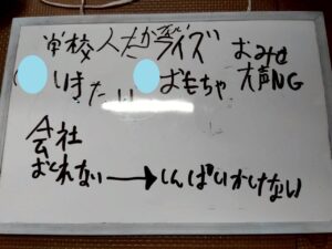 また、言うのは恥ずかしいからホワイトボードに書いて教えてくれる子もいました。