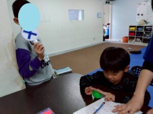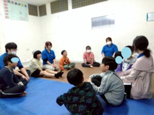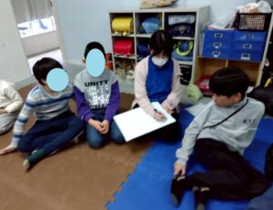 学校では、外に行きたいときに先生に言う事。ライズではおもちゃを出したかったら先生に言う事。お店では大きな声を出さない事。地震の時には窓が割れるから気を付ける事。など様々な方向から各自が理解しているルールを教えてくれました。