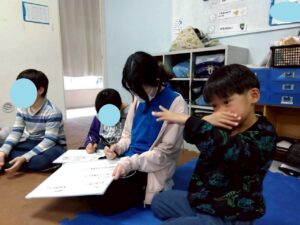 訓練室②では「運動遊び」を行いました!こちらも3月に入り春の訪れを感じるという事で曲「春が来た」の特定のワードに合わせて体を右に左に前に後ろに動かす児童の姿をどうぞ!
