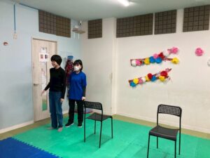 今日の第1教室のレクは「レッツリトミック」、音楽を聴きながら体を動かします!