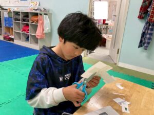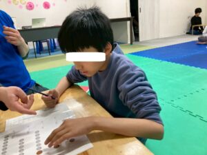 訓練室2では「SST (自己紹介)」を行いました。今回は、自己紹介カードに名前や誕生日、好きなこと、食べ物を記入!