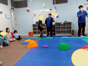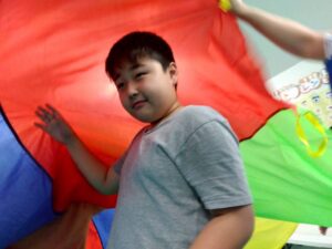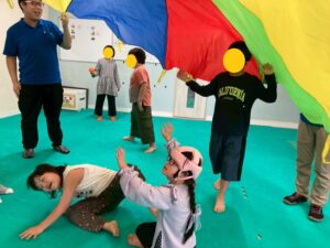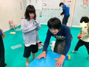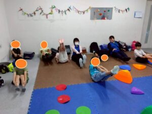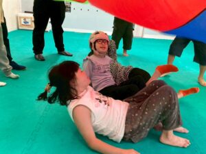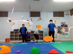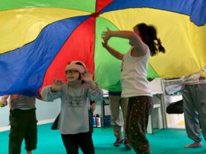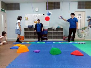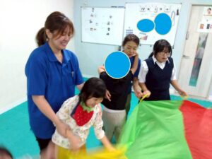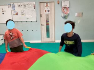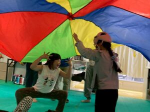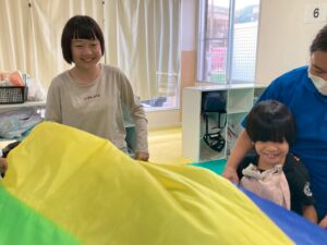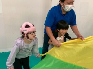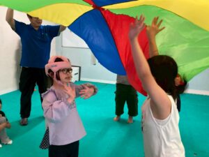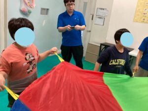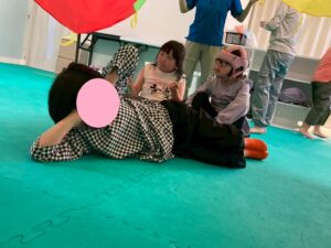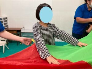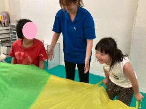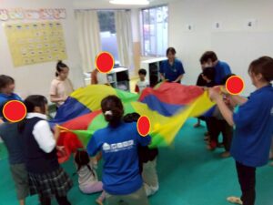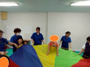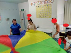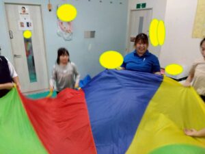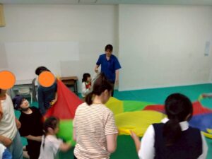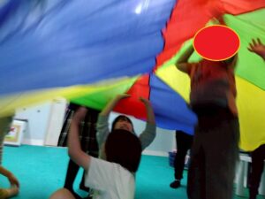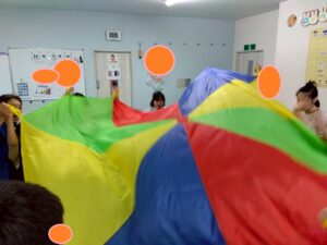 本日の第一教室は「リトミック」でパラバルーンを行いました。