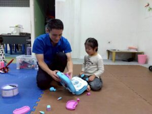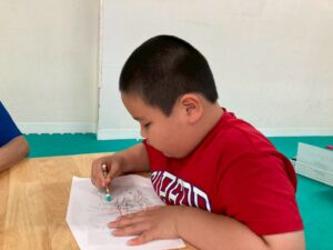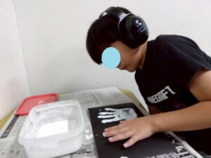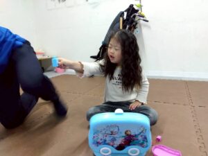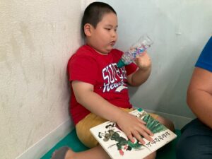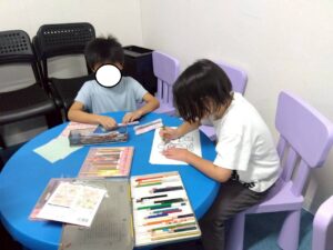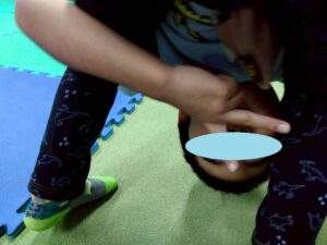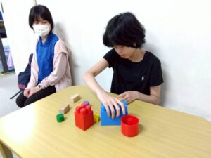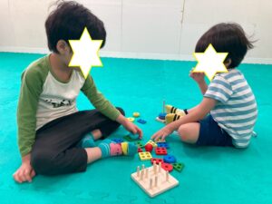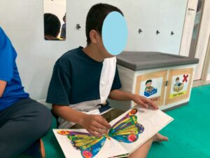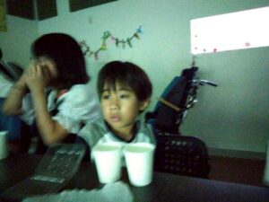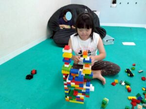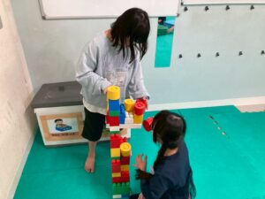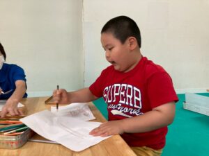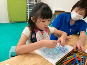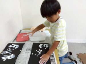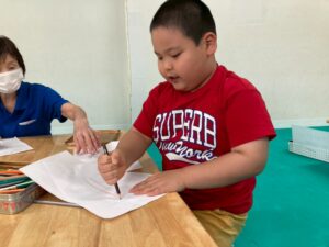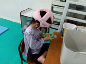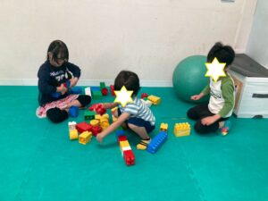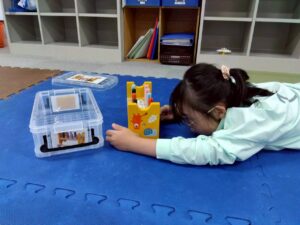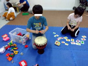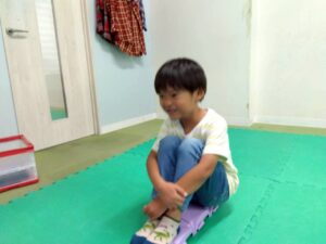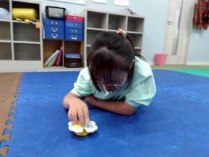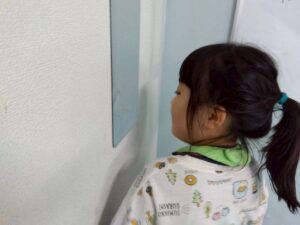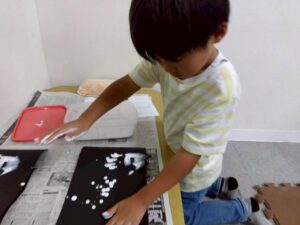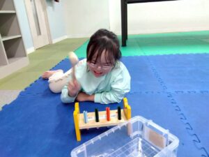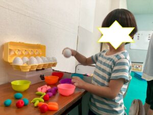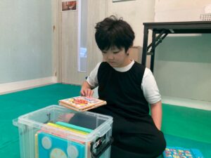 雨音を聞いたり、出来た水たまりにぽつぽつと降る雨がつくる輪を見たりして過ごしましょう。いつもよりゆっくり時間が過ぎるように感じます。自由に遊び、自分のしたい課題を自由にしましょう。雨を恨むでもなく、子どもたちは楽しく過ごしてくれました。