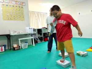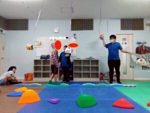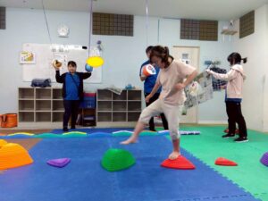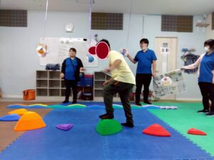 職員が作ったお手製コースを身体を上手に動かし行っていました!
