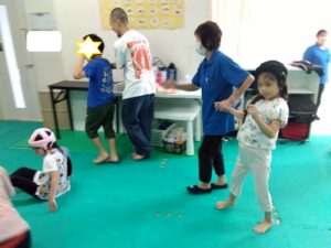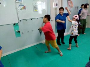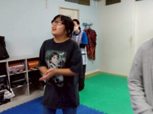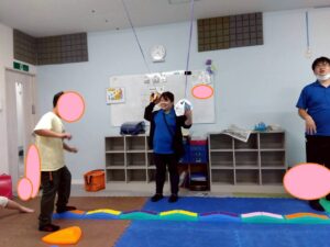 来所してすぐは、週の真ん中な事もあり疲れている様子も見られましたがダンスの先生が到着すると
