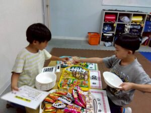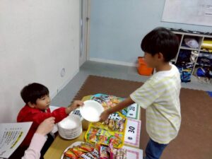 イラストを見ながらルール説明をして男の子チーム、女の子チームに分かれて行いましたよ。