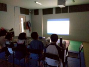 みんなで同じ映画を見ながら同じおやつを食べる。連帯感も感じるシアタ-でした。