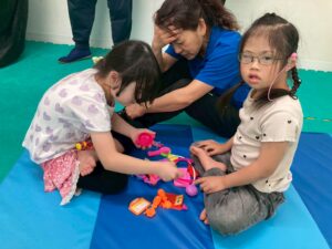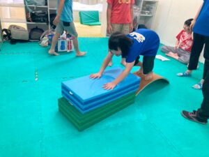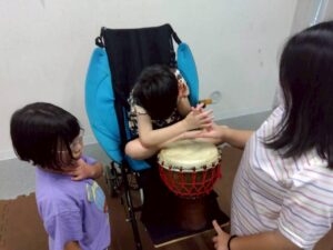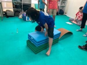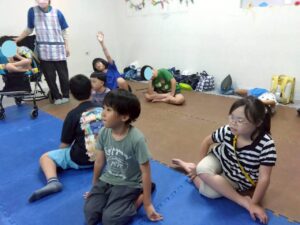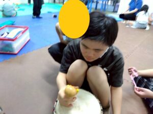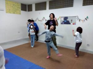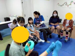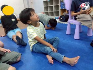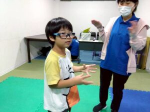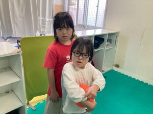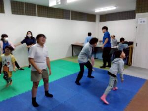 本日は訓練室①②共に「リトミック」を行いました。①の部屋では、音楽に合わせみんなで体を動かしながら、音楽が止まるとみんなでその場にしゃがみました!そんな児童たちの姿をどうぞ!