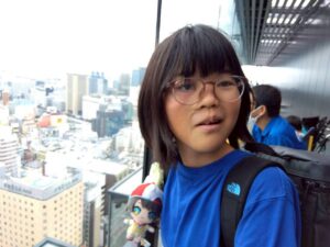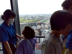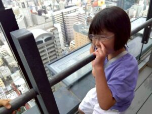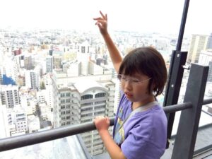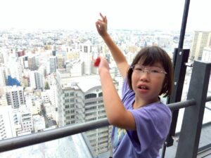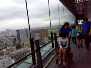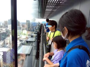 少し雨が降ってきていたので遠くまでは見えませんでしたが、25階まで登るエレベーターにワクワクしていました。
