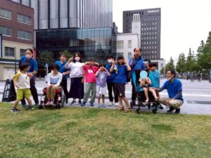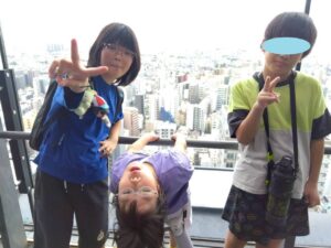 展望台から降りた後は市役所の外に出て、どこまで登っていたのか上を見上げて確認してはお友達と顔を見合わせて笑っている姿も見られましたよ☆
