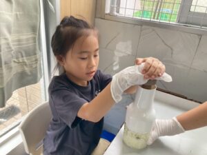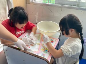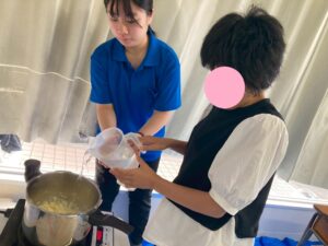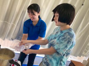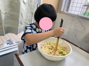 食材をブンブンチョッパーを使って刻んだり、包丁で切ったり鍋に具材を入れたりしました。