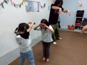 みんな、ダンスの先生を真似て上手に身体を動かしていました!