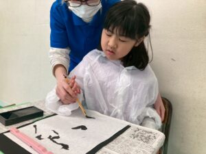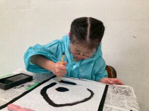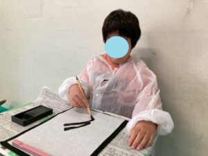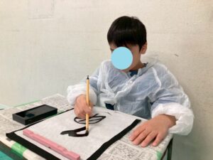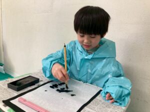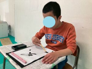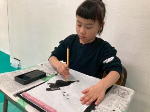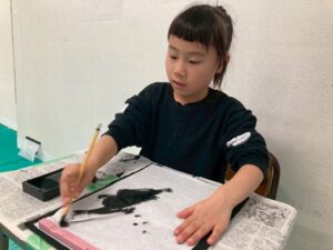 筆を使い描くことは、絵の具を使い行うことは、多くあるかもしれませんが、今回は墨汁を使用して書いて行きました!そんな児童たちの姿をどうぞ!