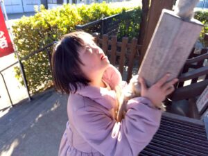 『神様にお願い事をする時は、最初に自分の住所と名前を言わなければいけないよ。たくさんの人がお詣りに来るのだから神さまだって誰の願いかなんて覚えられないからね』と誰かが言っていました。本当かな。ライズのみんなちゃんと言えたかな。